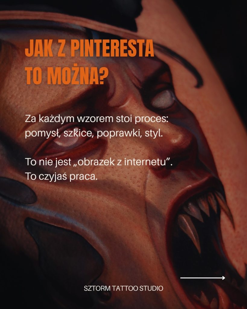 - Twoja opowieść – każdy tatuaż to historia. Kopia zabija indywidualność. Oryginalny projekt opowiada o Tobie.