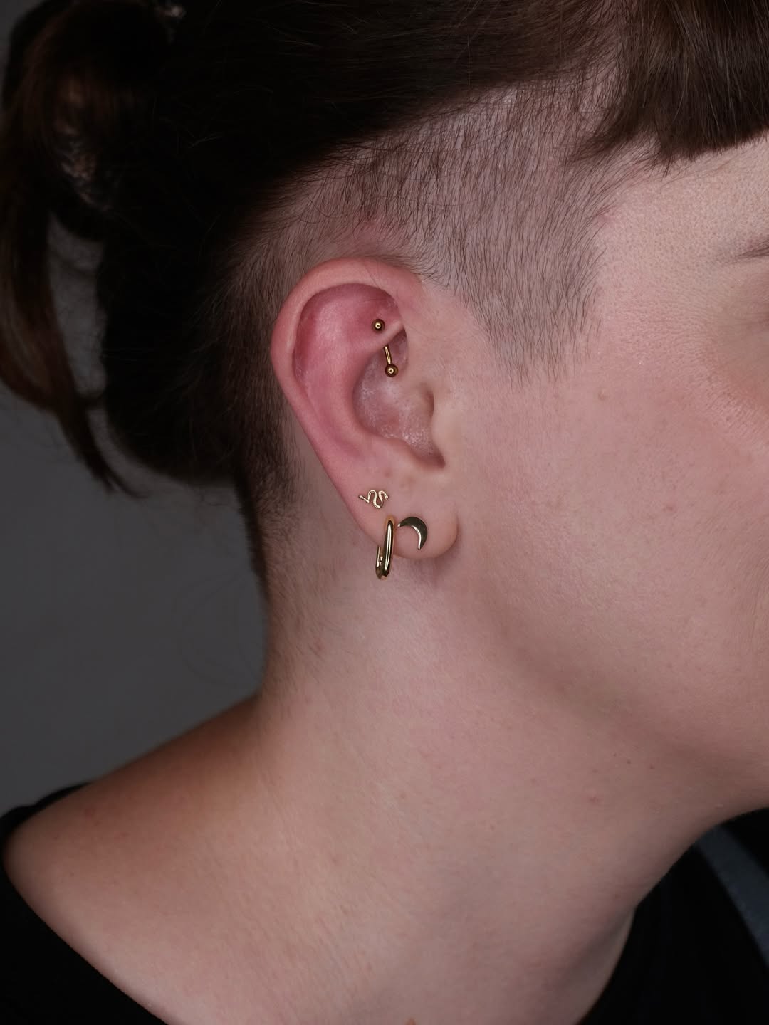 Przede wszystkim Kinga uwielbia tworzyć ozdobne kompozycje w uszach – bez wahania wykona też inne przekłucia. Ponadto zawsze dostosowuje się do Waszych pomysłów i preferencji. W jej pracy bezpieczeństwo i higiena stoją na pierwszym miejscu. Dlatego przed zabiegiem dokładnie omawia pielęgnację, abyście mogli cieszyć się pięknym i zdrowym piercingiem.